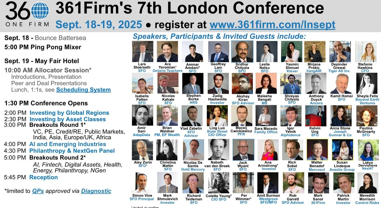 Sept. 18-19: 9th London Conference - 361firm.com/septlondon | register | Program Slide Deck